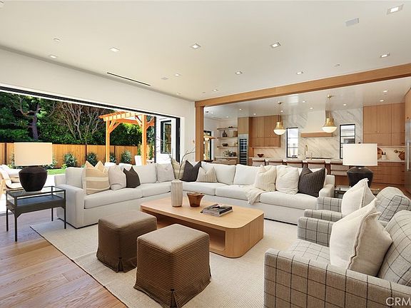Situated on an oversized inner-loop lot in the coveted Port Streets community, 1991 Port Claridge is a brand-new custom residence, completed in 2025 with exceptional craftsmanship and timeless architecture. Designed and built by Greg Clarke Construction, this five-bedroom, five-and-a-half-bathroom home also includes a dedicated office and spacious loft / teen room, offering a flexible and thoughtful layout for modern living. Step inside to discover French oak hardwood floors, high ceilings, 8-foot interior doors, and handcrafted wood beams. Upon entering you will find a private office and dramatic dining room adorned with custom stone and butler’s pantry. The gourmet kitchen is a chef’s dream with inset French oak cabinetry, a full suite of Thermador appliances—including a 48-inch range with steam oven, dual dishwashers, a 36-inch refrigerator and freezer, and a wine tower—plus a generous island that opens to the family room and breakfast nook. The family room is anchored by a marble surrounded fireplace, custom white oak cabinetry and shelves, a 16-foot Fleetwood pocket door that creates seamless indoor-outdoor flow to the rear yard. Upstairs, the luxurious primary suite features an oversized marble fireplace, a spa-like bath with heated floors, oversized dual vanities, a freestanding soaking tub, rain shower, and large walk-in closet with custom built-in cabinetry. Three secondary bedrooms are very spacious and enjoy their own private baths and walk-in closets, along with designer lighting and custom cabinetry. A generous laundry room boasts abundant storage and 2 sets of stackable washers and dryers. Outside, the beautifully landscaped rear yard is an entertainer’s paradise with a saltwater pool and spa with Baja shelf and feature three cascade fountains with LED lighting, a built-in BBQ island complete with outdoor refrigeration, a custom trellis, poolside gas fire pit, and a full outdoor entertainment system with speakers and TV. The home is completed with solar panels, a custom French oak garage door, and premium exterior materials including cedar shingles and natural stone finishes. Located just a short distance from the greenbelts, parks, and Andersen Elementary, this exceptional new construction home delivers both lifestyle and luxury in one of Newport Beach’s most sought-after neighborhoods.
