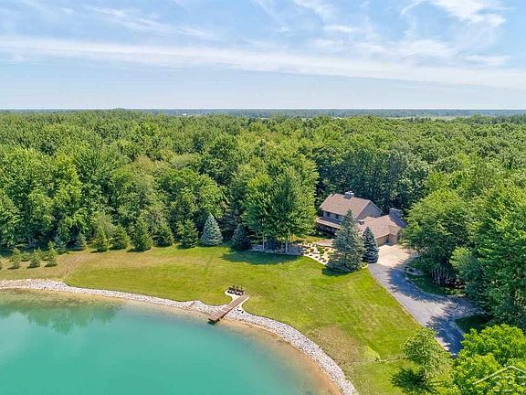 A Very special property offering 23.66 acres on a private lake in Thomas Township. This stunning home is over 3300 sq. ft. with 5 bedrooms 3.5 bathrooms and is a fine example of quality and care with solid wood cabinets and Quartz counter tops. The family room has vaulted wood ceilings and a real wood burning fireplace. There's a wrap around porch with French doors. The master bedroom is also vaulted and has a private updated bathroom with a tile shower, generous closet space, and screened in balcony. Other features include 2 newer furnaces, a Generac generator, and a finished walkout basement with a bedroom, full bath, office, and a full exercise room. Formal living room with fireplace and formal dining room. All newer paint and carpet, roof in 2011, main floor laundry, Anderson windows, 3 car garage, long paved private drive, and all the peace and quiet you could want. This is a rare opportunity. Call The Sarmiento Dream Team for your private showing.