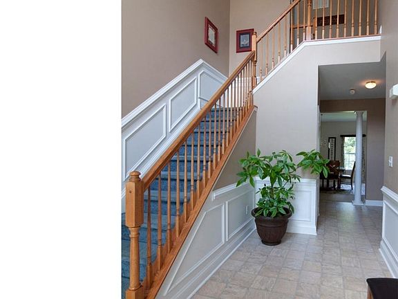 Beautiful 4 bedroom home in the desirable Ridings Development. You walk into the two story foyer and to the left is the formal living room with french doors that can be used as an office or another bedroom. The first floor features a kitchen with a large eat in area with sliding doors to access the deck and enjoy the peaceful yard that backs up to the woods. A big dining room, cozy family room with a gas fireplace, and a half bath complete the first floor. The second floor has a huge master suite with his and her closets, a large private bathroom with his and her sinks, soaking tub and separate shower. There are 3 more big bedrooms and another full size bathroom with double sinks and a shower/tub. The basement has 2 separate areas for you to enjoy...playroom, rec room, fitness room. This house has it all. Make your appointment today, because it will sell fast!