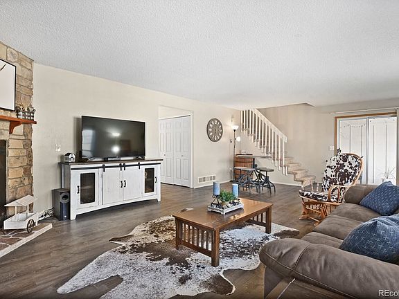 Large 4 bedroom, 3 bath townhome in Town and Country Village! This home features large kitchen, island and eat in dining space. Large pantry for storage off the kitchen. Main floor has 2 separate single garages off of the kitchen. Main floor bath and all appliances included. Spacious living room with fireplace and dinning room. Large Master suite for all your bedroom furniture with a master bath. Two additional bedrooms and bath on the upper floor. Finished basement with additional bedroom, laundry area and bonus room! Enjoy your coffee on the private covered front porch that overlooks open greenbelt space facing West, while the kids play in the private backyard. This location serves an incredible lifestyle with every amenity you need within walking distance. Main street Parker with its weekend farmer markets and year round fairs and festivals is a short walk down the street as well as H2O'brian pool and park and your association private pool. Also close by is Parker's PACE Center, Parker Library, RTD Park-n-Ride is just a 4 minute drive or 14 minute walk away! Quick commute to Tech center and DIA. This is the Largest unit in the community and doesn't come up often so don't miss this opportunity! Welcome Home!