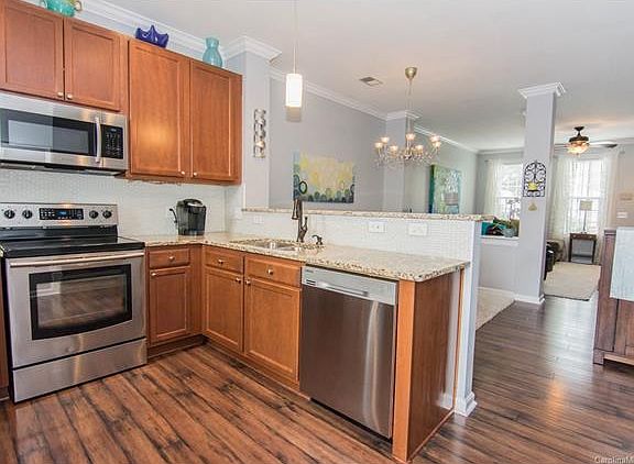 Excellent Location in sought after Antiquity. Spacious 2 Bedroom home that shows like a model. Open Floor Plan. Upgraded countertops, appliances and backsplash in kitchen. Gorgeous Hardwood Floors downstairs. Private fenced in courtyard. Walking community with pool, trails and dog park. Walking distance to dining, grocery and shops. Charming covered bridge leads to Davidson community and college close by.