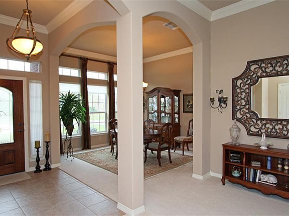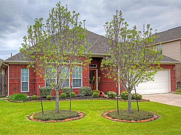 Immaculately kept all brick 1-story in Senterra Lakes! Features include a beautiful kitchen with breakfast bar, granite countertops, formal dining room and spacious living room w/gas fireplace. The oversized master suite has a sitting room/study and master bath with garden tub and separate shower . Extensive upgrades throughout! Outdoors is a huge 21x15 covered patio overlooking the pool and waterfall and also boasts a full sprinkler system. No detail overlooked!! Great curb appeal. A must see!