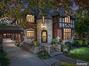 Located in the historic Woodward subdivision, this beautiful 1929 two-family home is full of timeless character and charm. The exterior features a striking two-story tower wrapped in Castel stone and an arched leaded-glass entry door. A mix of brick and stone adds to the home’s elegance, while a large medieval-style window framed in timber serves as a stunning focal point. Sitting on a professionally landscaped double lot, the property offers a peaceful retreat, complete with a detached three-car garage for plenty of storage. The arched entryway leads to a grand foyer with 12-inch marble flooring. The updated kitchen features rich cognac brown cabinets, granite countertops, and matching marble floors. The formal dining room is filled with natural light, and the oversized living room includes a cozy limestone-wrapped fireplace. Crown molding enhances the first-floor spaces, while arched doorways and grapevine molding add charm to the second floor. With six spacious bedrooms and 3.5 bathrooms, this home provides plenty of room for everyone. The partially finished basement includes another natural fireplace, perfect for extra living space. Discover this remarkable home's unique beauty and craftsmanship in the heart of the historic Woodward subdivision.