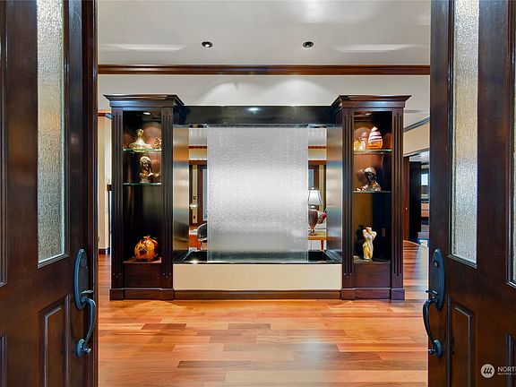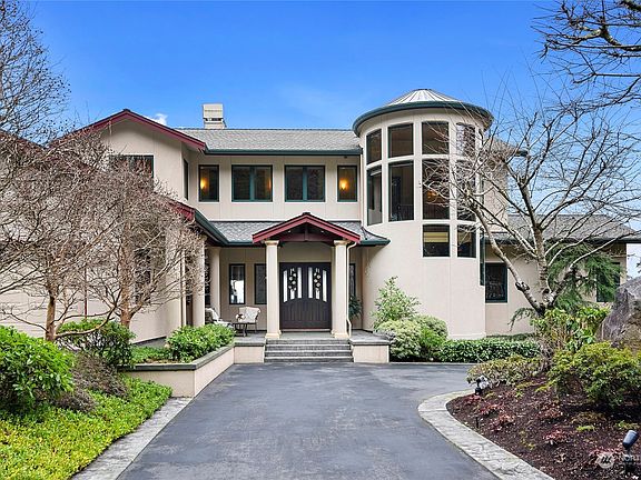 MOTIVATED SELLER-BRING OFFER!! Meander down your park-like trail to enjoy 350 ft of sandy beach. This 5-acre gated estate resonates privacy & tranquility. The grand entry cascading water wall beckons with unobstructed views from nearly every room. The stunning curved tower stairwell leads to the serenity of the private Owner’s suite. Take the elevator to the home gym for your daily workout, practice putting on the green or refresh in the sauna. Watch the sun set while sipping your favorite beverage in the bubbling hot tub. Prepare gourmet meals in the beautiful European kitchen & welcome guests to your elegant dining hall & cozy living room surrounded by luxurious finishes & masterful woodwork. Minutes to all amenities, airports & ferries!