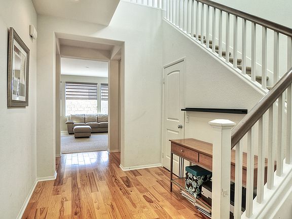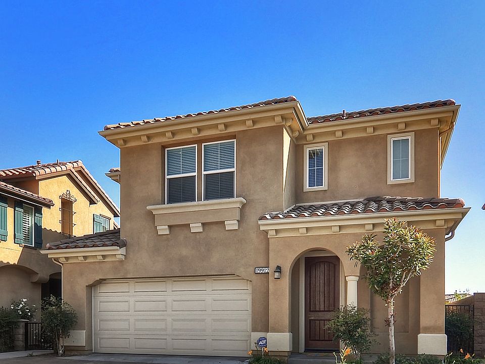 Welcome to Tierra, a collection of single-family detached courtyard residences. Within the courtyard are five homes. There are three bedrooms, two full bathrooms upstairs, and a half bath down. The high entry ceiling give an inviting sentiment with its expanse. The ceilings are high throughout the entire home. The kitchen was upgraded through the builder, and then later with high end appliances. The hardwood floors go well in making the space feel larger and warmer. Roman shades, plantation shutters, or horizontal blinds dress the windows. Benjamin Moore Zero VOC paint was used, emitting no toxins. There is a tankless water heater for endless hot water. The water is also filtered. In the master bath and hall bath, marble counter slab counter tops and marble tile in the shower and surrounding the tub. The house has recessed lighting throughout, and is pre-wired for Cat-5. With a stamped concrete backyard and cobbled courtyard add additional character that adds to the appeal of this home. The community area contains a pool, splash pool, spa, showers, and ample shaded seating. The schools, the neighborhood, and the amenities make this an appealing opportunity to live in Villagio of Yorba Linda.