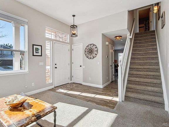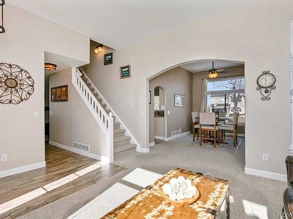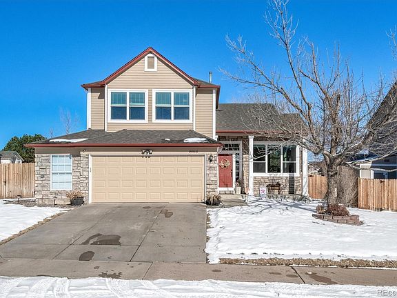 This gorgeous two story in Smoky Ridge has been meticulously maintained and updated and is located in the Cherry Creek School District. Through the front door find an entryway and living room flooded with natural light that leads to the dining room with huge picture window. The kitchen layout is a cooks dream with newer gunmetal/black appliances, granite counters, custom backsplash, undermount lighting and a great open concept to include sight lines to the family room, a large island with room for seating and a breakfast nook area. The family room is complete with a cozy fireplace with modern tile surround and custom mantle, flat TV wall mount and plenty of space to cuddle up. Don't miss the wood look tile flooring that flows through the kitchen, nook and entryway. The slider gives access to the large deck and backyard with mature trees. An updated powder room completes the main level. Upstairs you will find a lovely primary suite with spa bath with soaking tub and double vanities and walk-in closet. The other 2 upper bedrooms share a full bath and there is an upper level laundry for your convenience and the LG washer and dryer stay with the home. Permits were pulled to finish the basement which gives you 2 more legal bedrooms with egress windows, another family room or den area all with gorgeous luxury vinyl plank flooring, a full updated bath and plenty of storage. Great bones in this home with newer UV coated high-end windows and insulated garage door (2019). New hail resistant class 4 shingles and new gutters (2019). New exterior paint with transferable warranty and interior paint. New privacy fence in 2017. Newer central AC. New radon mitigation system, Nest thermostat and Ring doorbell all can be yours. The south facing front driveway means easy maintenance and snow removal. You will love this location with such easy access to shopping and restaurants. Jump on E470 and get to the airport or DTC in no time.