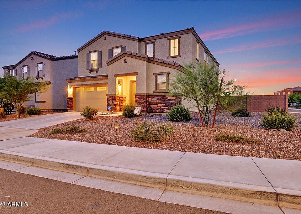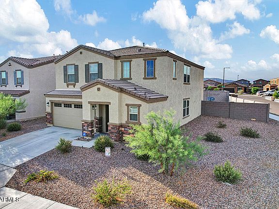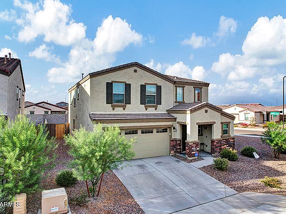 Home qualifies for $0 Down! Call for more details. Beautiful 2-story home on a corner lot in the desired Blue Horizon neighborhood! Providing a low-care front landscape, sweet curb appeal, & a 2-car garage w/extended driveway. The inviting interior offers beautiful wood-look tile throughout the 1st floor, neutral paint that gives a bright open feel, 4 sizable bedrooms, 2.5 bathrooms, & a fabulous great room. The open concept kitchen has a large island w/breakfast bar, granite counters, a farmhouse stainless steel sink, upgraded appliances, a huge walk-in pantry, & cabinetry space. Upstairs, you'll discover a large loft with endless entertainment possibilities. The romantic owner's suite features a private bathroom with a separate tub/shower, double sinks, & a walk-in closet. The ample backyard is awaiting your custom and personal touches; enjoy exercising the thought from the covered patio. Must see it to appreciate everything it has!