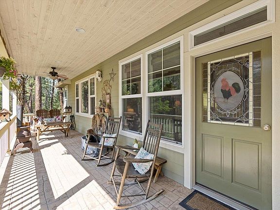 There's so much to love about this special home that's set on a 10 acre private lot. One-owner home built in 2007, a great-room style rancher with cathedral ceilings is perfect for daily living as well as for entertaining in the large kitchen/dining area. Main floor has engineered hardwood flooring and there's a wood-burning fireplace in the great room. Kitchen has quartz counters & lots of cabinets. Closet pantry and a huge laundry room for extra storage. The primary suite is over-sized and also has a dedicated office or nursery area, 2 walk-in closets and a full bath w/oversize shower & heated jetted tub. Guest bedroom with walk-in closet and built-in shelving. You can enjoy outdoor space on the covered front porch along with a patio dining area. There's also a fire pit for warming up in cooler weather. 18' x 36' pole building with a 10' x 36' lean-to for RV and extra parking. Property has beautiful rock outcroppings and a seasonal creek. Lots of wildlife and close to Nine Mile resort for lake access.