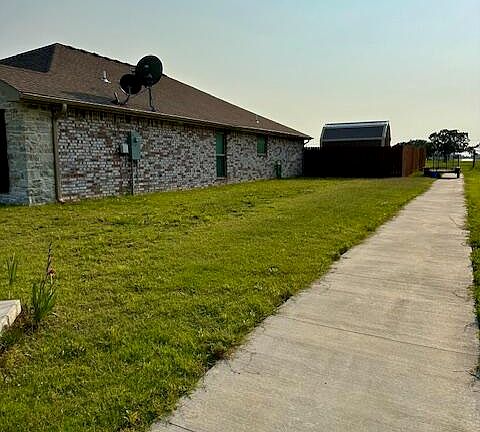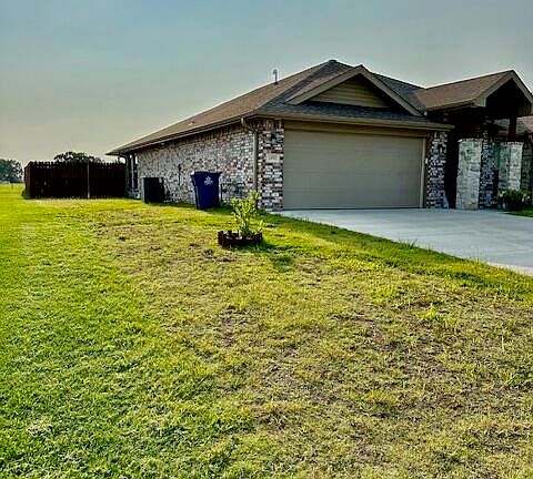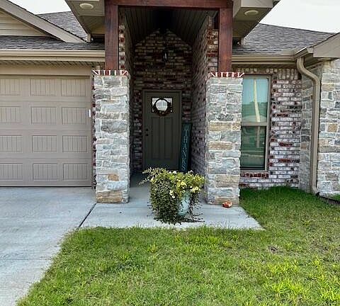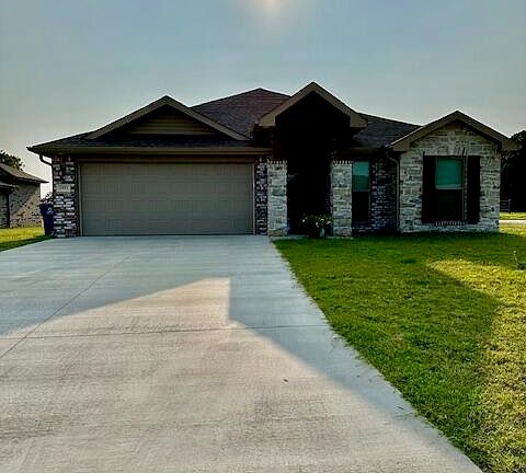 Planned subdivision with great curb appeal. 2 year old brick and stone 1773 square feet of living space that features 10 foot ceilings, open floor design with fireplace, granite counters, custom cabinets and glazed porcelain tile throughout. Large eat in bar in the kitchen features recessed lighting and walk in pantry. A covered back patio, attached 2 car garage with a 8 x 12 outbuilding. Full privacy fence in the back yard completes the covered back patio. This one won't last long. Schedule today before it's gone.