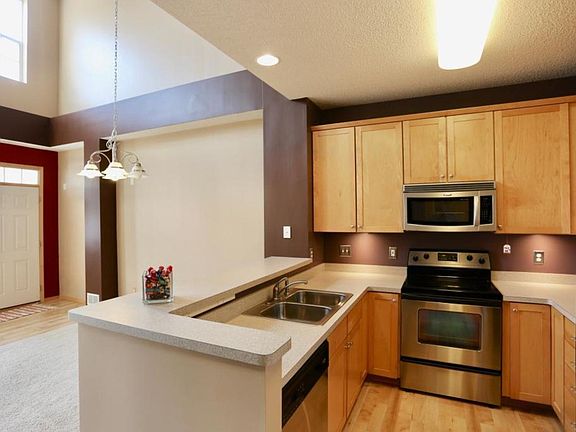 Charming open floor plan with 2 story Vaulted ceilings neutral colors, convenient location, Cozy gas fireplace, Breakfast Bar, Bay window, Great design and inviting decor. Loft area on the 2nd level. Maple colored floors, Wired for surround sound. Under counter lighting in the Kitchen. Insulated Garage door.