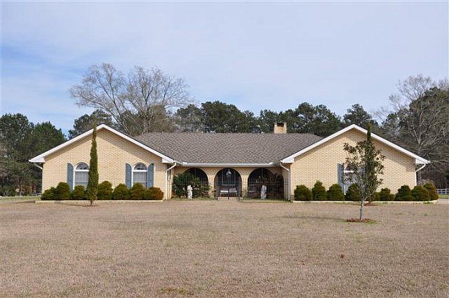 Large kitchen with pantry, desk, LOTS of cabinet and counter space, modern stainless steel/black applainces including wall oven and built in microwave. Split plan, spacious master suite with walk-in closet, both inside baths have double vanities, and huge living area with gas log fireplace. Exterior is landscaped, has a front porch and covered rear patio. Other features include rail fencing defining property line and nice workshop/shed big enough to house a riding lawn mower, which the homeowner will need to cut the manicured 5 ac lawn.