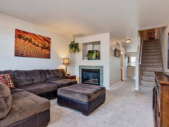 Awesome mountain views from this 2 bed, 2 bath townhome in Castle Rock! Backs to open/undeveloped land for unobstructed views from your back patio. Open floorplan features family room with gas fireplace, main floor 1/2 bath and laundry closet; washer & dryer included. Spacious eat-in kitchen has hardwood flooring, center island, stainless steel appliances, great counter space & upgraded lighting. Both bedrooms are ample in size, both with vaulted ceilings. Master bedroom has a walk-in closet & access door to the full bathroom. Enjoy evenings from the back patio-gas grill included! Home comes with 2 reserved parking spots, guest parking available also. Freshly painted exterior building. Includes A/C, ceiling fan, window coverings. Perfectly located in a quiet area but very close to Downtown Castle Rock, Douglas County Fairgrounds & Plum Creek Golf Club. Only 5 minutes to I-25. Excellent income opportunity!