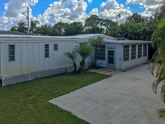 What an incredible opportunity to live in Martin County for an affordable price! This 2 bedroom 1 bath manufactured home in Stuart is clean inside and out and has an updated kitchen and bathroom. The home is hooked up to public water and you have NO LAND LEASE or HOA FEES! YOU OWN THE LAND! Property also boasts an oversize RV parking area with 30 amp service and a detached storage shed with electricity AND air conditioning! You'll be hard-pressed to find a better value in the area! Home is just a short walk from Phipps Park with fishing, boating, play area and camping.