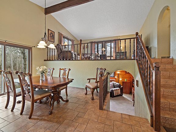 PRE-INSPECTED! NEW ROOF! NEW FURNACE! Nestled on 2 wooded acres, this meticulously maintained home offers a serene retreat while still being close to amenities. The horseshoe drive ushers you to a beautifully landscaped entrance & covered porch. Cooking is made easy in this updated, eat in kitchen with quartz countertops, reverse osmosis drinking system & sleek appliances. Just off the kitchen is the bright dining room with vaulted ceilings overlooking the private yard with abundant wildlife. Custom tile stairs lead to the expansive living room with views of your MASSIVE backyard. This upper level also features the primary suite with walk-through bath, & a second bed, both with walk-in closets. Downstairs is the comfy family room with built in desk that's also plumbed for a wet bar, oversized bed #3 plus a 2nd bathroom. The laundry room is connected to the garage W/2.5 stalls. Finish the basement for instant equity!