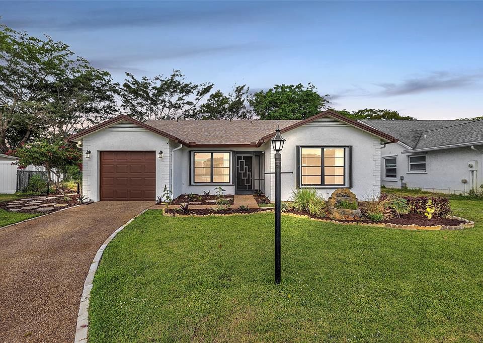 A considerable 1.5% seller-preferred lender credit is available to the buyer*. Ideal home on a quiet cul-de-sac with a smart 3-bed, 2-bath layout and over 10,000 sq ft of outdoor space—perfect for a pool, garden, or play area. Tile flooring throughout with brand new carpet in the bedrooms. Both bathrooms are in amazing condition. The open living room overlooks a massive backyard with fruit trees and a private irrigation well. Enjoy an enclosed porch—perfect for morning coffee or a workout. Updates include 2019 AC and water heater, accordion shutters, and an inspected roof. Community perks include pools, courts, clubhouse, free HBO and basic cable. Can be rented right away. Close to top schools, shopping, & the Turnpike. Stay friendly.