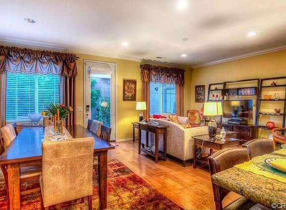 Exquisite and Model Perfect detached 4 bedroom and 3 bath Courtyard Home in the Villaggio Community of Yorba Linda. Built in 2010 by Toll Brothers/Shapell Homes. Walking distance to Yorba Linda High School. Highly desirable lot location with low association dues and NO Mello Roos. Gourmet Kitchen complete with center-island, granite counters, maple cabinetry, stainless appliances including double ovens and refrigerator. Wood flooring throughout downstairs accented with vaulted ceilings and neutral designer paint tones. Spacious Great Room and Formal Dining Room flow off kitchen, perfect for gatherings and entertaining. One bedroom and bathroom downstairs. Master Suite includes walk-in closet, luxurious bath with stone upgrades, dual sinks and separate tub and shower. Charming and tranquil backyard offers garden area, stone patio and spacious side yard with grass. Immaculate attached garage features epoxy flooring, built-in cabinets and tank-less water heater. Inside laundry and alarm system with Smart Phone capabilities. Ideally located near walking trails and Black Gold Golf Club. Association Pool & Spa. PRISTINE & TURNKEY!
