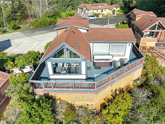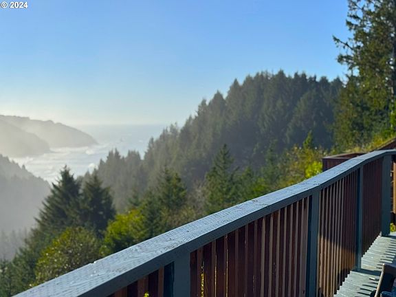This Charming Ocean and Mountain View Cabin at Whaleshead Beach Resort is the perfect retreat for those looking to embrace nature while enjoying comfortable living. This is an ACTIVE VACATION RENTAL and comes completely furnished. Located across from Whaleshead Beach, the cabin offers incredible views of the Pacific Ocean and the surrounding landscape, including the breathtaking Samuel Boardman Corridor along Oregon’s coastline.The cabin’s layout features a cozy decor with a downstairs bedroom and a loft with two queen beds, making it ideal for small groups or families. Whether you're unwinding in the hot tub with ocean views or entertaining guests on the large deck with a covered patio, there's plenty of space to relax and enjoy the coastal surroundings.Inside, the cabin offers a warm and inviting atmosphere, with an ocean-view living room that flows into an open-concept kitchen and dining area. Chefs will enjoy ocean views while using the gas range and stainless steel appliances. The layout is designed for ease and comfort, ensuring your stay is both relaxing and practical.The cabin is part of a well-maintained park, offering a simple and low-maintenance lifestyle with park fees that cover essential services such as water, sewer, trash, and basic cable. As part of the park, approval from management is required for residency, and the cabin is registered as a Park Model with the DMV, making it a great option for those seeking a more minimalist lifestyle in a friendly and peaceful community. Loft square footage is not included in total shown.With its perfect blend of natural beauty and comfortable living, this cabin is an ideal choice for anyone seeking a serene escape along Oregon’s stunning coastline.Be sure to watch the 3D Video.