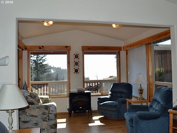 OCEAN VIEWS, SUNSETS & SERENITY - Fully furnished park model has a large covered deck entry, added square feet w/ finished sun room, extra sleep space w/ queen sofa sleeper, high ceilings, ample storage. Small electric stove for ambience & warmth; gorgeous views. Pocket doors & built-ins make good use of space. Bay window in bedroom; slider to hot tub from bedroom. Affordable, move-in ready, Priced to sell, owner may carry