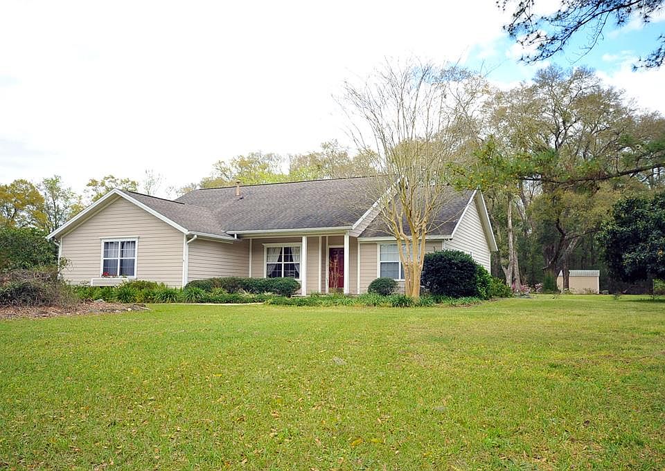 Lovely 3 bd 2 ba home in quaint River Glen Community just over a mile from charming downtown High Springs. Situated on a Beautiful acre with Multiple fruit trees, lovely landscaping & backing up to a private wooded area. Sit outback & enjoy the nature under the extra large pergola draped in fragrant Jasmine. Step inside the home which features 9 ft ceilings, newer laminated wood flooring & tile throughout. Spacious Living room with a brick wood burning fireplace, separate dining room & breakfast nook area. Updated Kitchen has plenty of cabinets! Large Master retreat features a walk in closet, double vanity, garden tub & separate shower! Split floor plan with 2 spacious spare bedrooms & bathroom. Newer roof, 2 car garage, hardie board siding