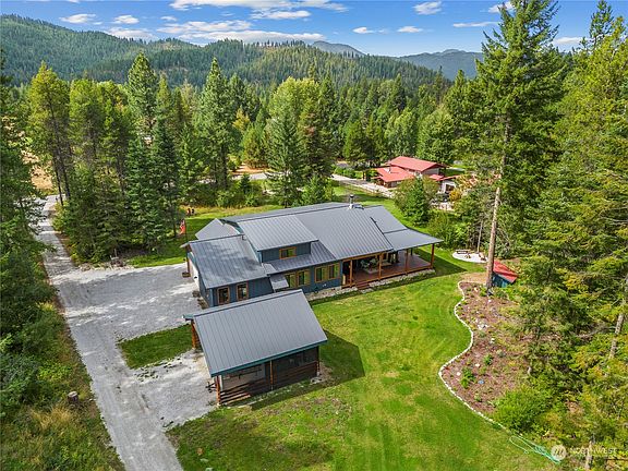 Walk to the river & relax or drive to Lk Wanatchee! Perfect blend of rustic elegance & modern comfort in this beautiful country home. Great rm with a stone hearth & wood insert will heat the home & set a cozy atmosphere in this soaring ceiling space. 7 rooms;office, a crafting room, a gym, bedrooms, a bonus loft and of course the resplendent primary suite on the main all designed with comfort in mind. Huge walk in closet and the spa infused, luxe bath with imported, Italian tile in the 2 person shower. Large laundry rm with a dog wash, cabinets & counters galore. This custom home lives like a rambler with all you need on the main floor, while the outdoor spaces offer ample rm for relaxation & entertaining on the spacious wrap around deck!