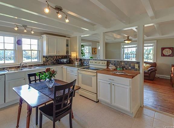 Arts and Crafts, 1 Story - Cornelius, NC Charming home with lots of character. Built in 1949, hardwood floors and massive beams give unique qualities.Big eat-in kitchen, open to the living room, has window overlooking the huge 14' X 17' screened porch.Bathroom was recently gutted and updated with a custom walk-in shower, spacious enough for a wheelchair. Mature hardwoods. New cement walkway. Asphalt driveway.Covered front porch. Custom ramp to back entry.Beside two new homes and across street from estate home. Great location.
