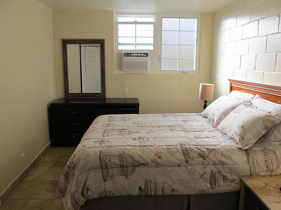 Available now. Super quiet with double pane windows. Parking included(if available). Pet Friendly. Fully furnished. All utilities included. Features full size oven, refrigerator, toaster oven, blender, coffee maker, pots/pans,silverware, cups/mugs and a full knife-set. Travertine floors throughout. Bedroom features a Queen bed. Living room has a queen size sofa bed. Window AC unit keeps it cool. Includes towels and linens for everything in the apartment. Coin operated laundry machines on site. No Sublets aloud. Must pass credit/background check. $50 monthly fee for a pet. One year lease preferred.