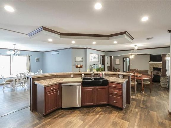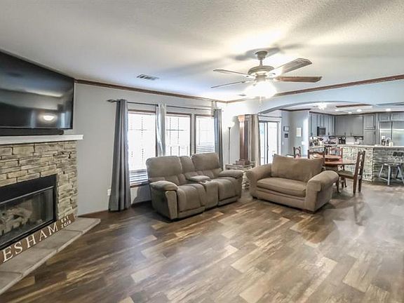 This attractive 4 bedroom 3 bathroom mobile home sits on a 2.2 acre lot! Inside, you will walk into a comfortable and functional layout. The kitchen features abundant cabinets, a large center island, bar seating, and stylish countertops. The kitchen flows effortlessly into the spacious dining area and living room. This property includes a fenced in backyard, a 15x20 covered garage, and an additional fenced area on the property. This home sits on a permanent foundation. This property is waiting for you to call it home!
