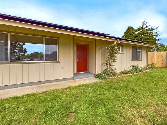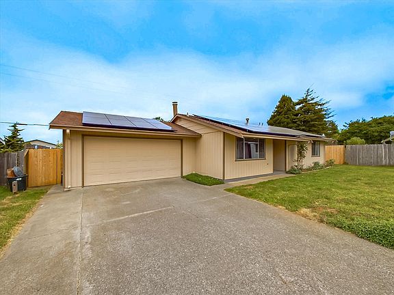 Located at the end of the cul de sac this charming home is move in ready. This home features 3 bedrooms, 2 baths, fireplace with hearth, forced air heat , security system, and recently installed 10,000 watt solar panels. The new sliding glass door off the dining area opens up to to a very spacious cement stamped patio perfect for entertaining and BarBQ's. The great yard is wide-ranging and has a beautiful redwood tree at the far end. There are garden beds and a brand new fence for privacy to keep your pets and kids safe.Don't miss out on this easy care home with new and recent upgrades. The solar panels are NOT leased and paid for. You can't beat this location with an easy commute to Cal Poly Humboldt State, bus lines shopping , and coffee shops all within walking distance.