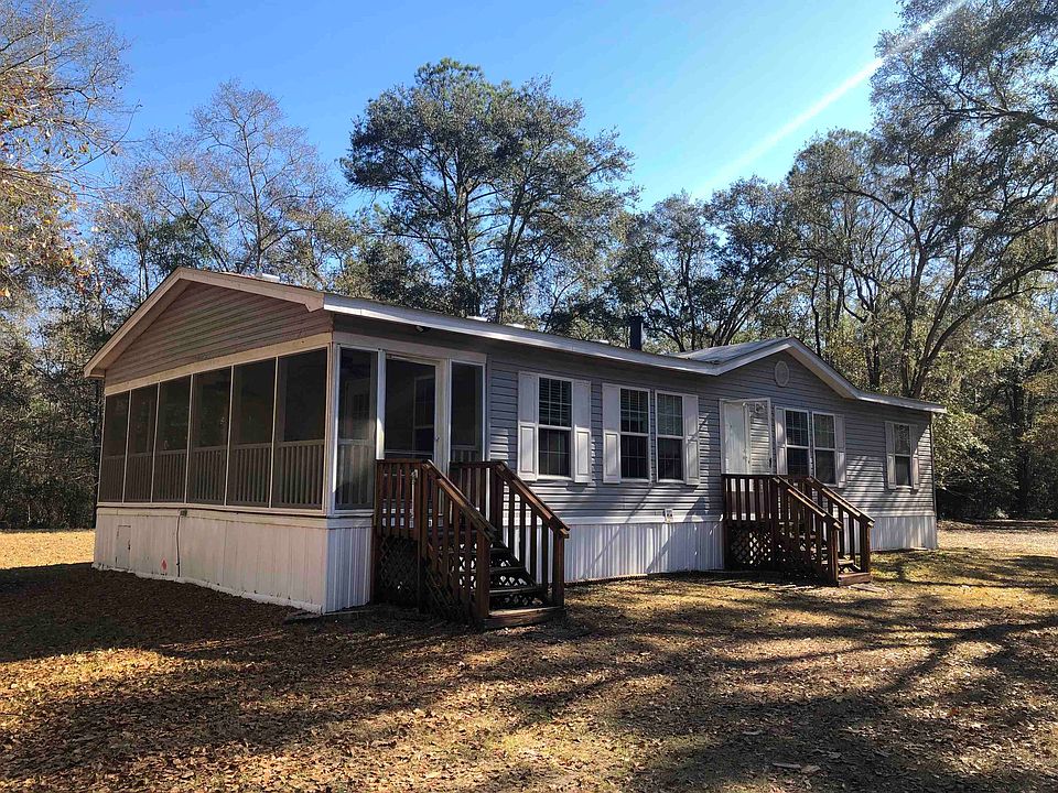 Want to live out in the woods? Look no further! This is a very well maintained 3/2 2007 "Home by Destiny" doublewide mobile home with a new roof, on 2.18 ACRES. DEER AND TURKEY FEED RIGHT IN THE YARD. The property has been partially cleared, is partially-fenced with an a gate, and has 2 outbuildings and a wood shed between Tallahassee, FL and Valdosta, GA. Must love isolation, dirt roads and zero neighbors.