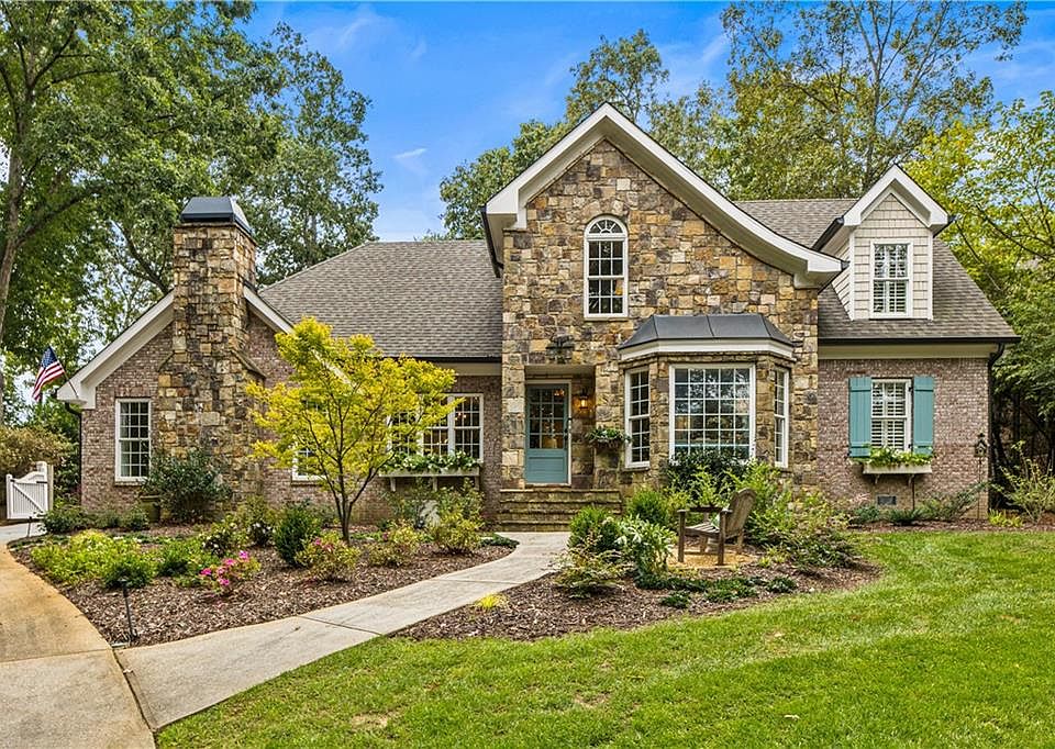 This exquisite custom-built home in the heart of Dunwoody offers top-tier features, including four-sided brick construction and a three-car garage. Recent renovations enhance the kitchen and owner's bath, while the dramatic great room showcases a vaulted, beamed ceiling and a stunning Thierry Francois-designed cast stone fireplace. The spacious, light-filled kitchen features a large center island, quartz countertops, ample cabinetry, a six-burner Viking gas cooktop, double ovens, and a butler’s pantry with a wine fridge. The main-level owner’s suite provides a private retreat with a luxurious bath, walk-in closet, and a secluded patio. Thoughtfully designed for modern living, the home includes dual office spaces, a large media room with surround sound, a home gym, and a full bath with a steam shower. Hardwood floors run throughout, with plush carpeting in the secondary bedrooms. The private, fenced backyard is an entertainer’s dream, featuring a putting green and lush professional landscaping. With a gated driveway, a charming courtyard entrance, and exceptional curb appeal, this home is a true Dunwoody gem.
