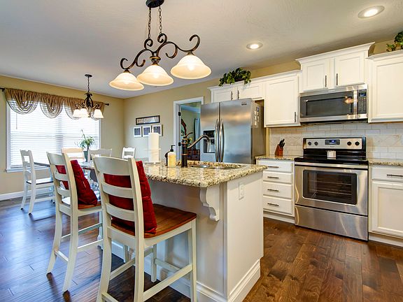 Very clean. One-owner home. Large corner lot w/ privacy fenced back yard & covered deck. 3 car garage. Open living/dining/kitchen. Gas fireplace. Hardwood floors in main areas. Kitchen features center island w/ seating, granite countertops & large walk-in pantry. Split bedroom plan. Large primary suite w/ huge closet, dual vanity, & walk-in shower. Great curb appeal. Check it out!
