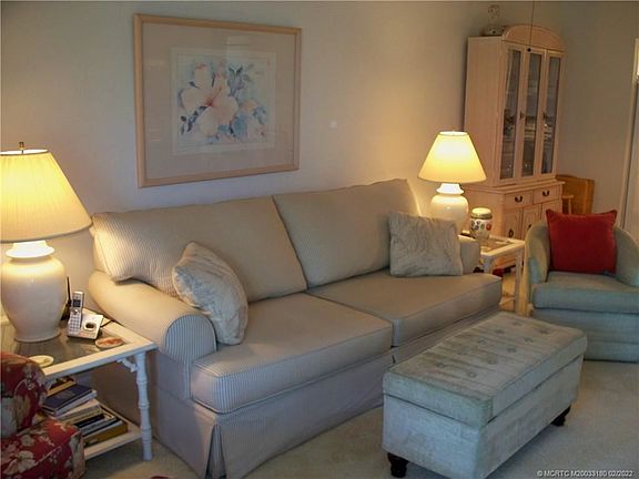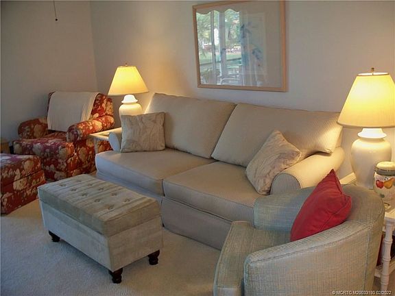 Great location close to the clubhouse and amenities. This unit is one of a few that have a sliding glass door off the living and the master bedroom that opens to a large screened balcony with a view of the pond, bridge, and golf course. Roll down storm shutters on the porch. Master bedroom with walk-in closet. 2nd bedroom has a large corner desk and trundle sofa/bed. Kitchen has white cabinets and newer refrigerator, microwave, dishwasher and disposal. The furniture will remain. Enjoy UNLIMITED GOLF, 2 fishing piers, 2 clubhouses, WIFI at the main clubhouse, pool, bocce, shuffleboard, library, exercise room. Water/ sewer/basic cable included too.
