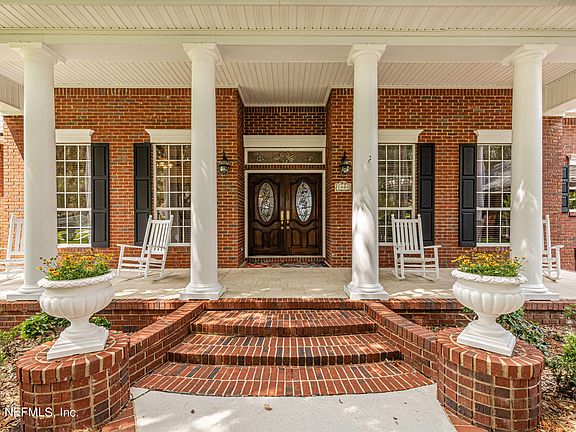 Custom built waterfront home on Doctor's Inlet with every detail meticulously attended to. Located in the prestigious Pace Island gated neighborhood convenient to Fleming Island. The extended southern style front porch with large columns gives you the perfect place for rocking chairs. Double wood doors with beautiful leaded glass accents greets you upon entering the foyer. Large windows show the stunning views of the river as you walk into the large bright living room. The focal point of a double-sided stone floor to ceiling fireplace brings the living room and kitchen together for family gatherings. Every detail has been added to the custom-built hickory kitchen cabinets. Newer stainless-steel appliances with the , GE Profile Advantium Trifection oven, GE Profile Advantium Oven and GE profile microwave, glass cook top on the island, Samsung refrigerator, Kitchen Aid dishwasher. Stunning granite countertops with stone backsplash set off the beautiful natural wood cabinets that have custom glass inserts and under cabinet lighting. The cook island faces the enormous eat-in kitchen with stone fireplace, iron chandelier with customer painted walls and accents, all looking out over the pool and river. Step onto the clouds as you walk into the owner's suite and feel the light cushy feel of new carpet while your view looks out over the river with large, picturesque windows. A beautiful stone wall with an electric fireplace brings a warm light during the evening. Spacious owners' bath is complete with a Jacuzzi tub, large custom shower with glass enclosure, separate double sinks with vanities and two spacious closets. Upstairs has expansive storage in the workout room with an extra-large closet. Three bedrooms all with large bright windows looking out to the river. Two fully equipped bathrooms. Custom wains coating made from engineered Australian pine on the stairs, second floor hallway and double desks for the students to study at. Enjoy the evening sunsets while sitting out on the screened porch or screened pool deck with LED lighting. Saltwater pool is designed for volleyball, includes a heater and pop-up cleaners and is surrounded with Travertine tile. Enjoy an outside fire in the evening at the pit and the gentle sounds of a one-of-a-kind pond less waterfall with a UV light treatment to eliminate the algae. Stroll down the 300 ft shared dock with LED lighting, a 7000 lb. lift with new motor and a 40' x20' boat slip with power and water.