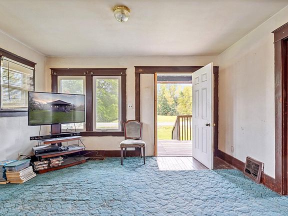 Old fashioned charm and craftsmanship are evident in this country house set well back from the road. It has some outstanding features & updates but needs a lot of help to become a clean, cozy home once again. Spacious front porch. Large rooms with original hardwood, beams, and trim. Vinyl replacement windows. Newer siding & water heater, 15 yr old furnace & roof with no leaks. 3 yr old A/C. Recently updated bathroom with tiled shower, quartz countertop. Laundry area off the kitchen is rough, basement gets water when it rains heavily. Large yard surrounded by beautiful trees & farmland. Storage shed and generator included. Potential for short term rentals. Comcast internet, municipal water, Lakeshore schools. Being sold AS-IS, ready for your vision. Near many wineries, 2 hrs to Chicago.