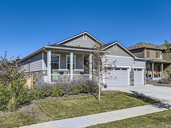 Welcome to your new home located in the High Point DIA neighborhood! This newer 3 bedroom, 2 bathroom, 2820 SQFT ranch style home is sure to please. Entering the home from the beautiful curb appeal you will find an inviting foyer along with two large guest rooms and a full bathroom. Continuing to the rear of the home you will encounter the large open concept kitchen which features a large island with plenty of seating for entertaining, ample counter space for preparing meals, a pantry for storage and a gas range for convenient cooking. The kitchen opens up to the dining space as well as the large living room. The entire home is outfitted with plantation shutters that open at both the top, bottom or both for your choice of natural light and privacy. The large primary suite features a huge walk-in closet as well as an ensuite bathroom with double vanities and shower. The 1150 SQFT unfinished basement is awaiting a buyers personal touch. The backyard of the home is private and complete with a pergula covered deck, an area for a fire pit and plenty of space for entertaining. The home also features a 3-car garage complete with a Tesla Power wall and solar system which creates more power than is needed in the home. This home also provides the convenience of proximity to the neighborhood park, pool, public transportation and Denver International Airport. This move in ready home has been meticulously maintained and is ready for its new owners. Contact us now for your private showing.