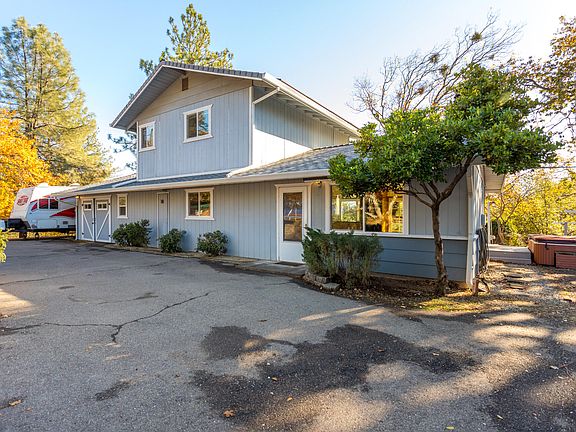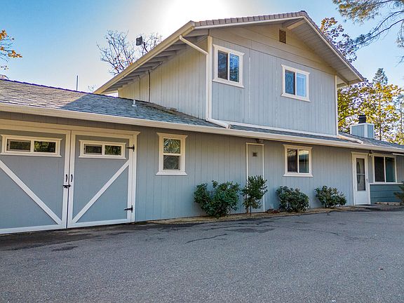 COUNTRY HOME on 4.5 Acres close to Shasta Lake! This rural two story Hilltop home offers a Spacious open floor plan with a wood stove insert, and tile flooring throughout. There are granite countertops and custom Oak Cabinets in the kitchen. Large Laundry room with half bath and utility sink. Owner's suite with walk in closet, En' Suite bath and French Doors overlooking the covered back patio with fabulous views. Upstairs offers a large Bedroom with En' Suite Bath and a private deck, 3rd Bedroom would also make a great office. Attached 1 car Garage/shop. Detached Oversized 2 Car Garage, Above Ground Vinyl Pool, Solar panels, Dual AC Units, Hot Tub with deck, RV parking, Fenced Garden area with raised beds and more.