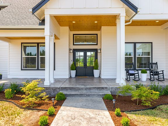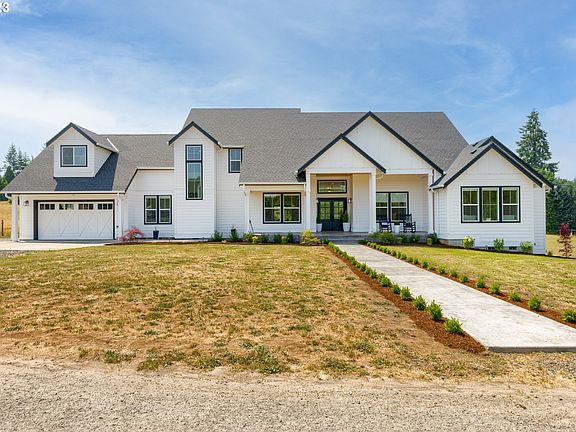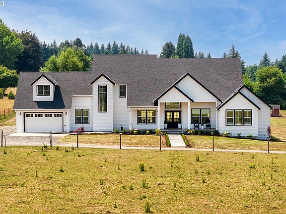 Quintessential Farmhouse on 2 level acres w/ over 4200 Sq Ft. Mostly one level living (see floor plan) w/ enormous bonus room, bedroom & full bath upstairs only, could be ADU/Guest Quarters? Plenty of room for shop, parking & toys! Tall ceilings on both levels, gas fireplace, custom built ins, Primary suite on the main floor w/ built in dressers, rain shower & wall wand + soaking tub. 2 bedrooms w/ Jack & Jill bath, extra storage & cabinets everywhere + custom shelving & pot filler in kitchen. Large mud room close to garage & laundry. True 5 bedroom home + bonus room & office w/ built in desk! Covered patio w/ stamped concrete overlooks your private backyard! Wired for generator, 2000 gallon septic tank & upgraded hot/cold exterior spigots! Close to town & shopping! Come see this custom beauty & relax on the front porch and watch the horses in the pasture roam around.