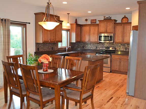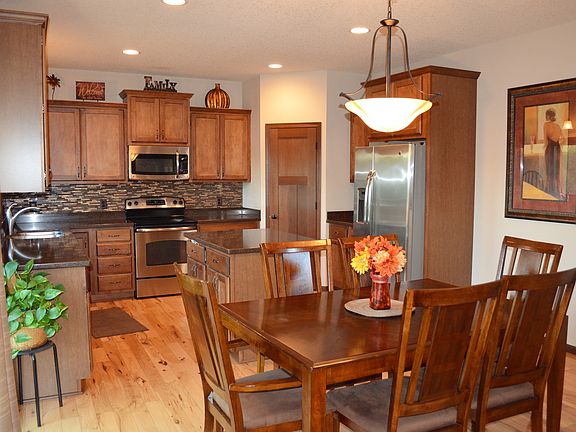 Perfect move in ready home in excellent location. Large kitchen with center island, beautiful granite counter tops, hardwood floors. Open main level great for entertaining. Fireplace in family room with built ins on both sides. Tile in mudroom and baths. Four bedrooms on upper level. Master has large private bath with heated floors. Large deck overlooking private back yard. Walkout lower level with built in storage. One small pet will be considered with deposit. Walking distance to Lakeville North High School. Call to schedule a showing. Available for short term lease. Tenant responsible for water, sewer, and trash.