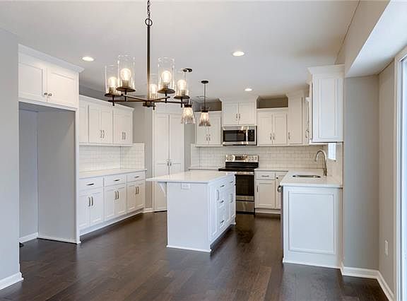 Gorgeous family NEW HOME! Cul de sac lot, 4 bedroom, 3 bath, deck, Big master suite with walk in closet. Pantry, Granite tops, custom cabinets, hardwoods, and tile upgrades all as standard. Finished rec room in basement along with the 4th bedroom and full bath in the finished basement. Big spacious yard boarders green space for great views. approx 30+ days to completion. Only 15 minutes from Olathe and Overland Park. Photos are of a similar completed home.