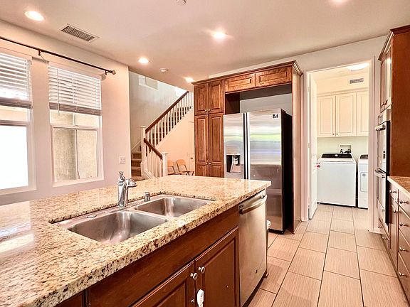 Welcome to your new home in the heart of the Villaggio Community, Yorba Linda. This meticulously maintained 3-bedroom, 2.5-bathroom detached condo offers a harmonious blend of modern elegance and comfort. Built in 2014, this residence boasts a myriad of upgrades, making it a delightful place to call home. The whole house is newly painted. The kitchen stands out with its large granite countertop island and bar, complemented by top-of-the-line appliances including a gas stove, double ovens, dishwasher, microwave, and refrigerator. The master bedroom is a sanctuary of its own, featuring a spacious walk-in closet and a master bathroom that offers a luxurious experience with a separate tub, shower, and dual sinks. The other two bedrooms share a convenient jack and jill bathroom. Brand new washer and dryer are installed for your use right away. The 2-car attached garage is not just for parking; it's equipped with modern conveniences such as a waterless tank, EV charger, and built-in ceiling storage shelf and cabinets. Efficiency and practicality meet seamlessly in this space. Step into the paved backyard, designed for easy maintenance and perfect for outdoor relaxation. A stainless steel BBQ Grill is provided to make your weekends fun and memorable. Enjoy the community amenities, including a refreshing pool and a playground for leisure and recreation. Location is key, and this home is strategically situated close to highly sought-after award-winning Yorba Linda schools, parks, scenic walking trails, the prestigious Black Gold Golf Club, and the vibrant Yorba Linda Plaza. Don't miss the opportunity to make this beautifully upgraded house your home. Schedule a viewing today and envision a lifestyle of comfort, style, and convenience in the Villaggio Community. One year lease term. Tenants pay the utilities except HOA. Less than 65 ibs dogs are allowed with $500/each pet deposit.