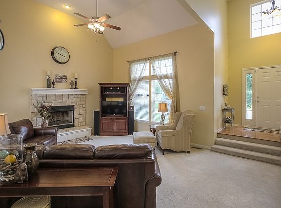 GORGEOUS 2-story!!! NEW 25 year exterior paint & FRESH interior paint! Great room has 2 story vaulted ceilings and STONE fireplace! Kitchen with hardwoods, stainless steel appliances and BRAND NEW tile backsplash! Spacious master bedroom with trayed ceiling, walk-in closet and TILED master bath with JETTTED TUB! Finished basement with 4th bedroom & bath! CUL-DE-SAC LOT, deck, patio, fence, AND backs to greenspace! This IS IT! Welcome home!