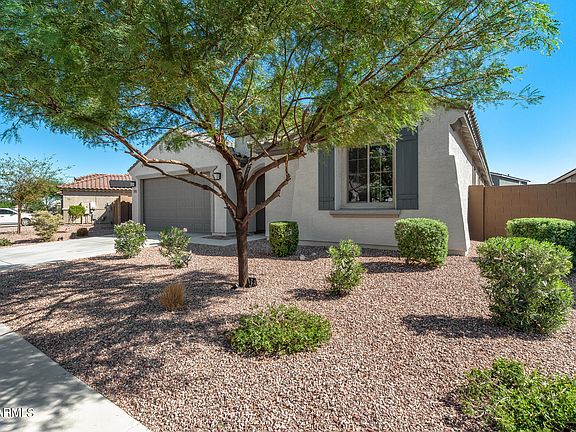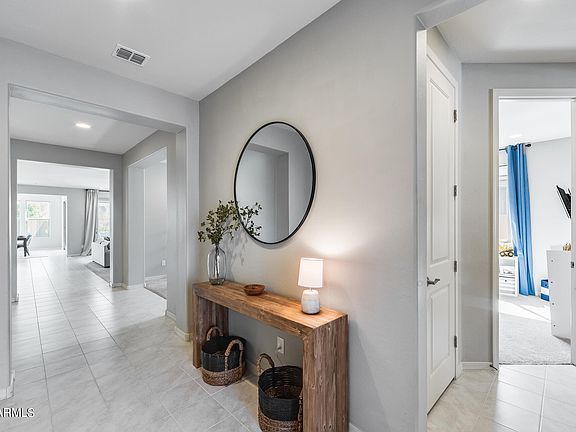 *Buyer can assume Seller's 3% Loan* Wow!!! Come check out this meticulously maintained 2020 build in Blue Horizons! Front door opens up to spacious entryway that leads to the large living room with a multi-slide glass doors that overlook the beautifully paved & grass backyard with professional grade misters installed to cool you down during those hot summer months. Home boasts tall ceilings, grey tones throughout, a wide-open floor plan, an enormous kitchen, and formal dining room with built in cabinets and quartz countertops for entertaining. Kitchen overlooks living room and showcases white colored cabinets, quartz countertops, walk in pantry, large kitchen island & stainless-steel appliances. Master bedroom has en-suite bath with dual sinks, extended glass shower with dual showerheads including a ceiling rainfall showerhead and a huge walk-in closet! Take advantage of low APS Bills with Owned Solar and radiant barrier on roof for the next Buyer!