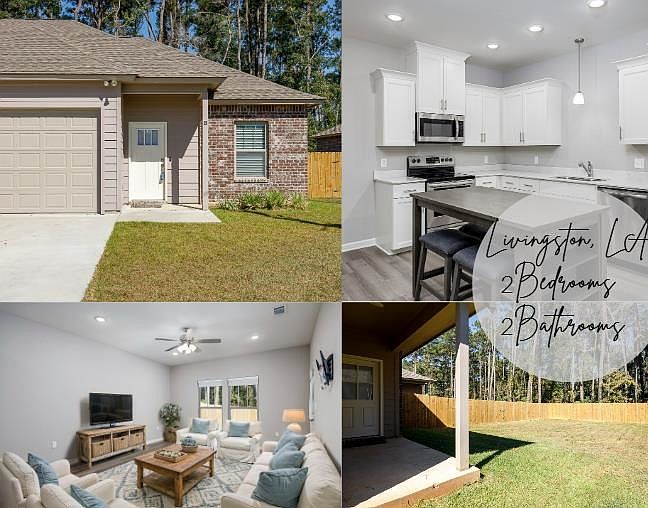 Beautiful 2 bed, 2 bath, 1,056 living sq ft townhome built in 2022 features an open floor plan that enhances the flow and connectivity of the space, making it ideal for comfortable living and entertaining. Step into the adorable kitchen where you'll find beautiful white cabinetry that complements the quartz countertops and stainless-steel appliances. The primary bedroom features an en-suite bathroom with ample storage provided by a walk-in closet. The primary bathroom invites relaxation with its garden soaking tub. Additional perks include a convenient garage, a fully fenced-in backyard perfect for privacy and outdoor activities, and a back patio that is a wonderful spot for fresh air and casual gatherings. Ring doorbell and kitchen table/island to REMAIN! Great location, only minutes from I-12, and convenient to many amenities within Livingston. NO HOA! NO CARPET! No Flood Insurance Required! 100% Financing Available! Call to schedule your private showing today before it is too late!