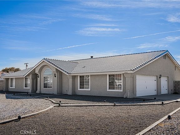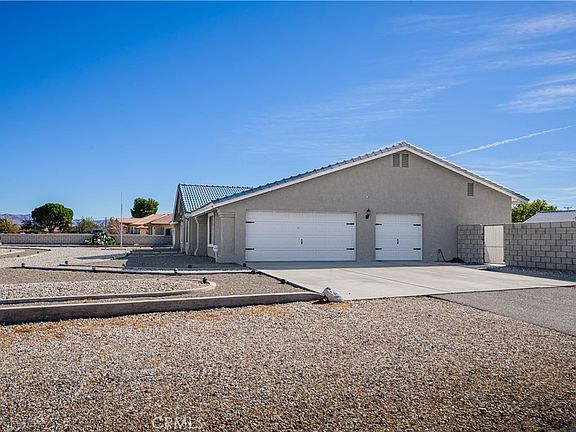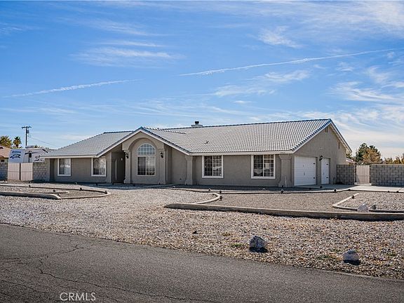 Welcome home to this beautiful property located in a quiet neighborhood in Apple Valley. As you step into the front door, you are greeted with a large, formal dining room complemented with high vaulted ceiling, beautiful wood-like tile, and a large window that oversees the front of the property. The open concept kitchen includes oversized newer custom granite with live edge counter tops, an island that gives this kitchen more space to entertain, spacious and freshly painted cabinets, stainless steel appliances, a cook top stove, and a great sized dining area. The family room has a fire place which makes this home cozy and perfect for family night. Recessed lighting throughout the home. There is a large flex room off the kitchen which could be used as a storage room, playroom, or an office. New Nest thermostat with wifi connectivity that you can control from your phone. Indoor laundry room with cupboards and a deep farmhouse sink, and an area to hang dry clothes. The home is equipped with custom shades throughout, as well as addition black out, pull downs behind the shades. Recently had a completely brand new HVAC installed. New water heater, as well as new toilets. Every outlet in the home was replaced with tamper resistant (child proof). Ceiling fans in all 5 rooms were replaced as well. All door hardware and handles were upgraded. The master bedroom includes an above average sized walk-in closet , well kept carpet flooring, double sinks, tub, and a single shower. The rest of the bedrooms and bathrooms are all above average sized with ample closet space. 3 car , mostly finished garage, with extra storage space in the rafters and built in shelves. The exterior comes with a large covered patio and concrete floor, a fully fenced block wall, mature fruit trees with watering system, oversized shed room that’s equipped with electricity and ventilation, plenty of RV or boat parking space. Front and back yard is rockscaped providing minimal maintenance. This property is perfect for anyone who appreciates owning a large piece of land.