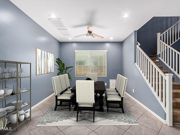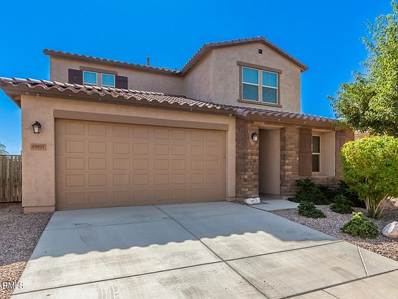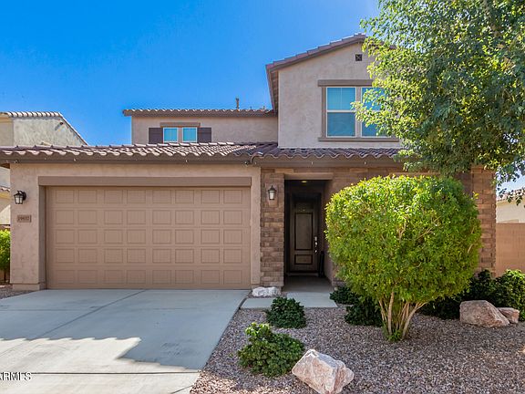 MOTIVATE SELLER! Become the proud owner of this energy-efficient two-story home in Buckeye! This 5 bed, 3 bath property offers a low-care landscape, a swaying shade tree, & a beautiful brick facade. Delightful interior features calming palette, neutral tile flooring, plantation shutters, & a spacious living room w/pre-wired surround sound. Magazine-cover kitchen boasts ample white cabinets, tile backsplash, SS appliances, granite counters, a walk-in pantry, pendant lights, & an island w/a breakfast. Perfectly-sized loft is ideal for private gatherings. Carpeted main bedroom has a full ensuite w/dual sinks. Enjoy hanging out in the lovely backyard providing a relaxing covered patio, grassy area, sparkling blue pool/spa, & gorgeous mountain views! Don't miss it! Take a tour before it's gone!
