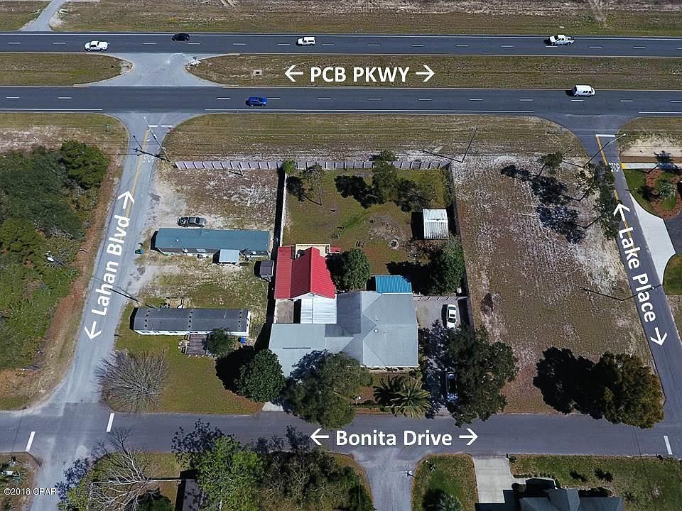 ONE ACRE,LAGUNA BEACH,WEST END PCB, 4M to Pier Park, between Lake and Lahan Blvd are two homes.One home is a 3/2 with 2 1/2 car garage, second is efficiency 1BR/1bath and small kitchen.Large shop,ample storage. 1/2 mile to the Gulf of Mexico! Property is zoned C-2. East side, a 100x160 Vacant Lot, the West side is an 88x160 lot with two privately owned mobile homes in place and space for one more single wide. Two lots rent for $270 a month and the other rents for $280 a month.Privacy fence behind the house measuring 123x160;8x14 shed w/covered 12x14 deck;covered patio; covered deck outside the master bedroom; irrigation; heavily mirrored tinted windows;30 AMP RV Connect,Great for your personal home; Vacation Rental or Business.Flood Zone X, requires NO flood insurance. Come visit today!