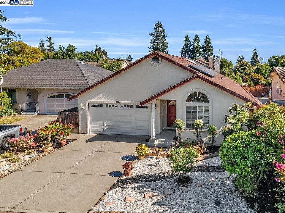 Welcome to this stunning single-level home, built in 1999, offering 1,754 square feet of living space on a spacious 6,632 square foot lot. This charming residence features 3 beds, 2 baths, w/ a 2-car garage, situated on a private street just moments away from downtown, transportation (BART) and schools. The heart of the home is a remodeled eat-in kitchen w/skylight & family room combo, complete with a cozy gas fireplace. Step outside to a beautiful redwood deck, perfect for entertaining or enjoying peaceful moments. High ceilings throughout the house enhance the sense of space and light. The primary bedroom is a true retreat, featuring high ceilings, a beautifully appointed en-suite bathroom with raised cabinets, and double sinks. The kitchen and bathrooms are both beautifully designed, ensuring comfort and style. The great room concept combines the kitchen and family room, creating an ideal space for gatherings. Access the redwood deck from the family room or the primary bedroom, providing seamless indoor-outdoor living. Additionally, this property includes a 10x12 foot storage room with power and a vent, previously used by the owner for cooking, offering extra utility and convenience. Don’t miss the opportunity to own this beautiful home that perfectly blends comfort