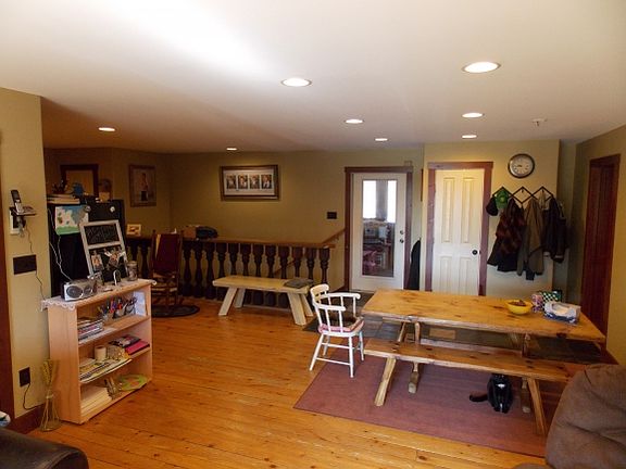 Beautiful 3-bedroom, 1-bath home with an open floor plan. Situated on 0.80 acres. Home includes hardwood and slate flooring, a newer driveway, newer paint, and radiant heating. This home also features 1200 sq ft of garage space. Ideal for mechanics or hobbyist. Enjoy the sound of the babbling brook from the enclosed deck. Quiet and secluded. 30 minute commute to St. Johnsbury and Montpelier.
