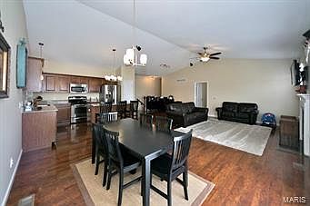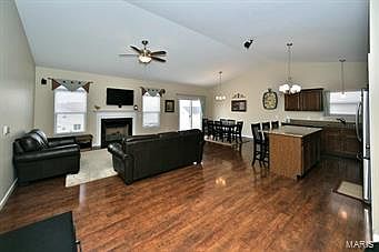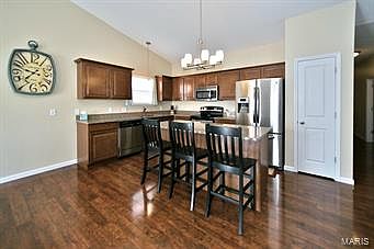 Welcome to this gorgeous 4 bedroom, 3 bathroom ranch! Open floor plan with cathedral ceilings and hardwood floors extending throughout the great room, breakfast room and kitchen. The kitchen features silestone countertops, center island with breakfast bar, stainless steel appliances, and cherry cabinets. The great room holds a gas fireplace and ceiling fan. The master bedroom suite boasts coffered ceilings, ceiling fan, double sinks, tub & separate shower. 2 additional bedrooms, another full bathroom and laundry room complete the main level. The lower level is finished with a walk-out, spacious rec room, bedroom, bathroom, and rough-in for bar. Both upstairs and downstairs are wired for surround sound, perfect for entertaining! Outside, the home continues to impress with a 2 car attached garage, maintenance free deck, patio space, and large backyard. Come see this gorgeous home today!