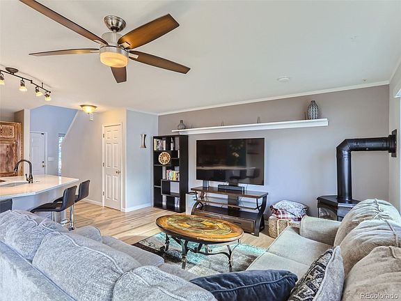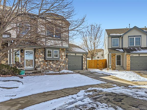 Introducing a beautifully updated 2-bed/3-bath townhome that epitomizes modern living in a desirable location. Nestled on a cul-de-sac, this corner lot property basks in abundant natural light, enhancing its spacious feel. A path of elegantly designed stone pavers leads guests to the welcoming front walkway and the stone paver design continues to a generously sized back patio. This outdoor area, complete with a cozy fire pit and an electric roll-out shade, is ideal for summer gatherings. A new fence around the property ensures privacy and offers direct access to an expansive greenbelt, while the low-maintenance backyard includes a convenient storage shed. The interior of the home is just as impressive, with stunning hardwood floors on the main level creating a warm and inviting atmosphere. The open-plan design integrates the living, dining, and kitchen areas, perfect for both everyday living and entertaining. The kitchen, a standout feature, boasts an oversized Quartz island, a farmhouse sink, contemporary faucets, and newer stainless steel appliances. Additionally, it provides access to a separate laundry/mudroom with an interior connection to the garage. All windows & French doors are new high energy Renewable by Anderson windows, with transferrable lifetime limited warranty. French doors lead to the back patio, inviting ample natural light into the home. A gas-burning stove in the living room adds a cozy touch during cooler winter nights. Both primary bedrooms offer a serene retreat, each with an ensuite full bathroom and spacious walk-in closets. This prime location is close to walking trails, a community park, a gazebo, major shopping, and retail centers. Quick access to major freeways makes Denver, Boulder, the Foothills, and DIA just a 30-minute drive away. Demonstrating evident pride of ownership, the home INCLUDES A 1 YEAR WARRANTY, providing additional peace of mind and convenience for the discerning buyer. ASK ABOUT OUR PREFERRED LENDER CREDIT!